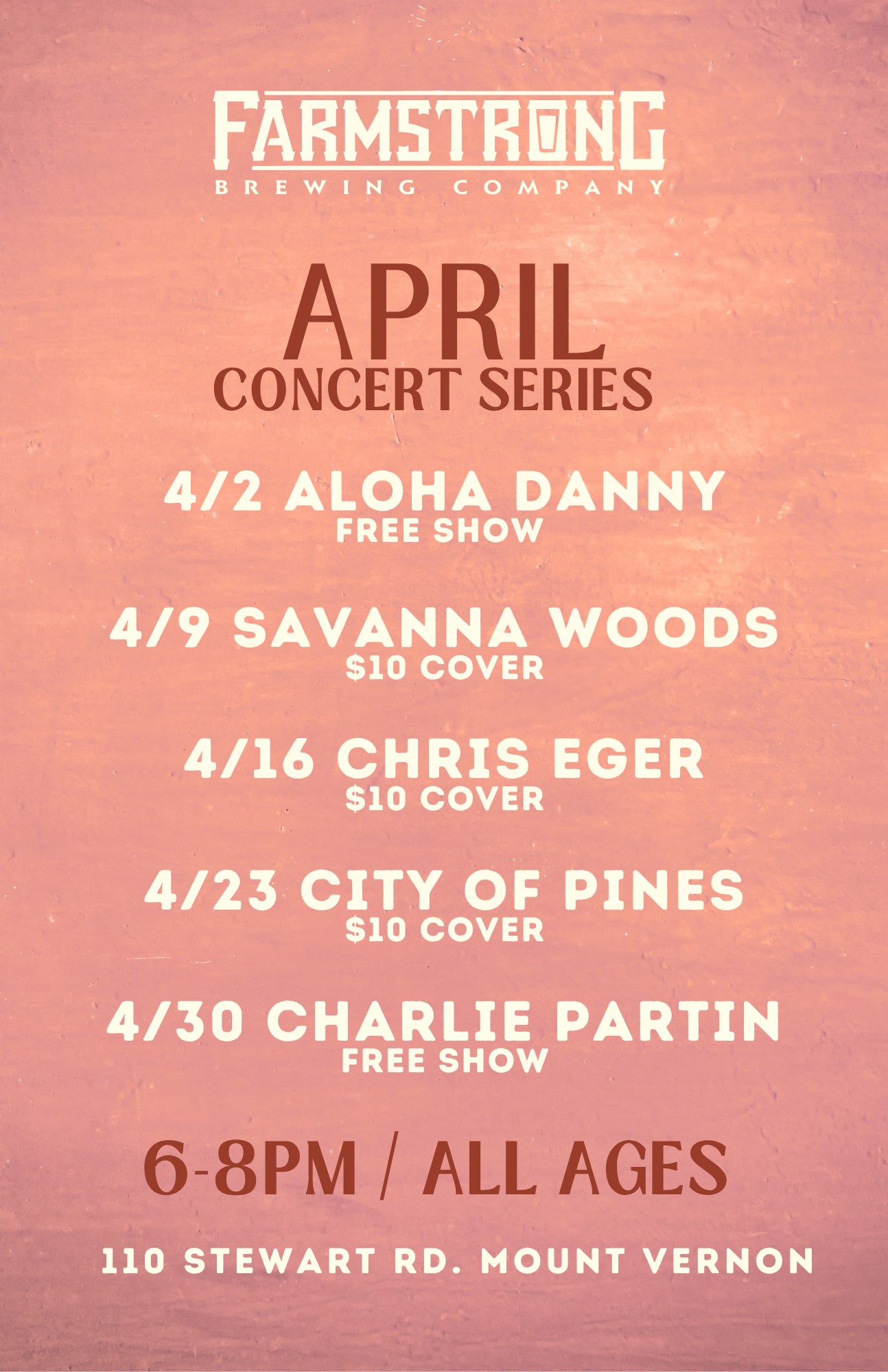 APRIL CONCERT SERIES Every Thursday 6pm-8pm. All Ages. Open Seating.