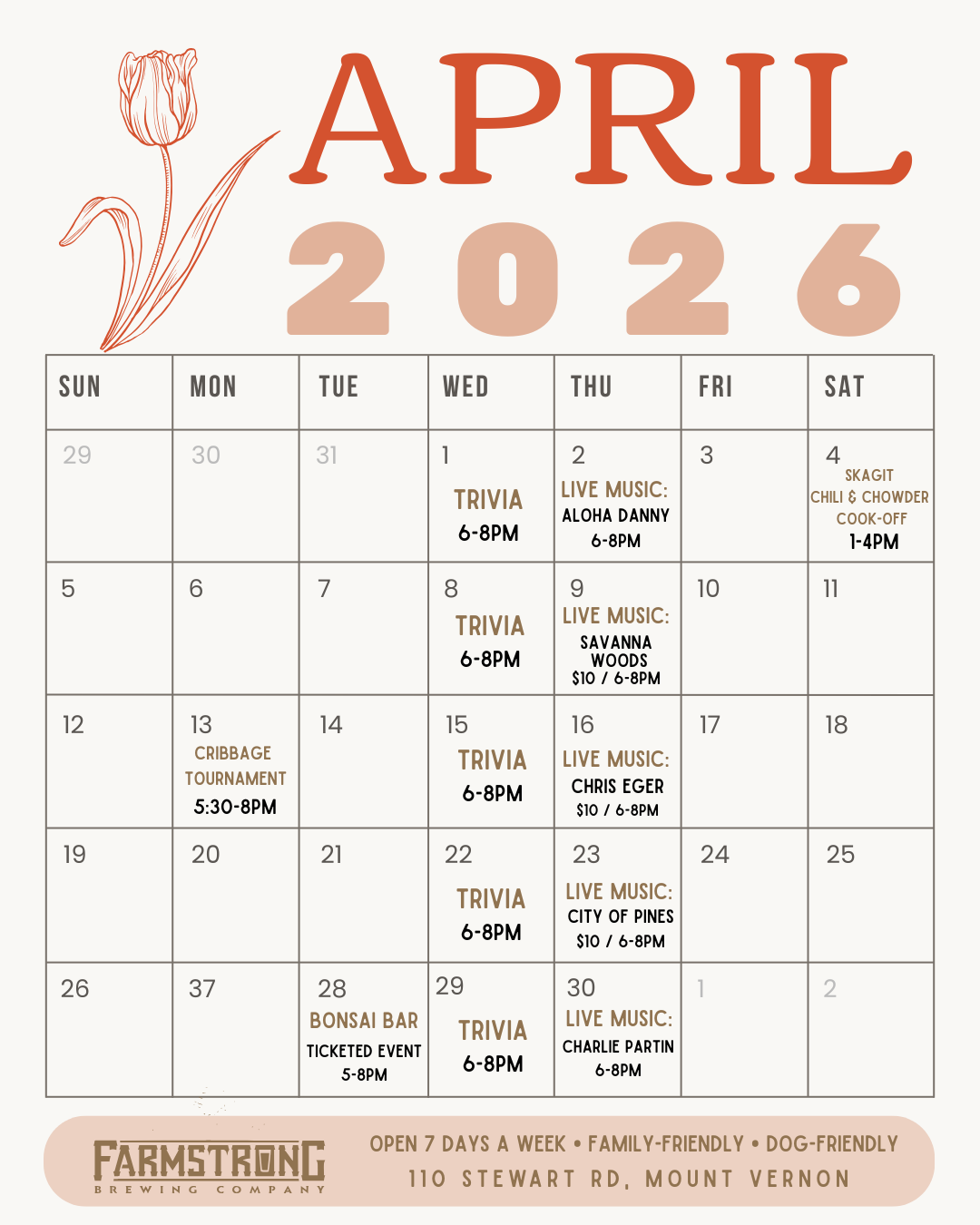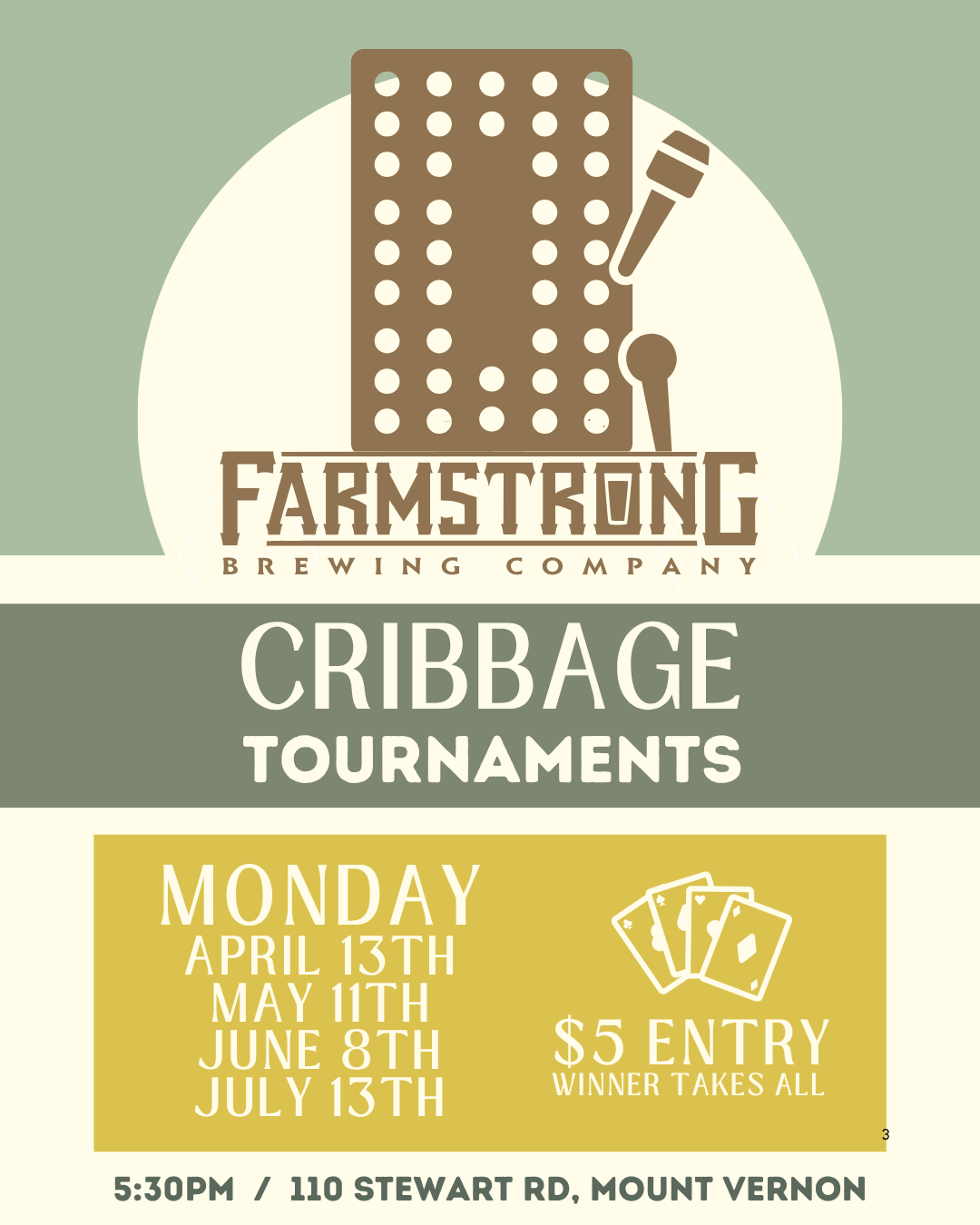 Come to Farmstrong the second Monday of every month for a bracket based tournament of cribbage. Sign up at the brewery or give us a call to reserve your spot. Buy-in for the tournament is $5 and the winner takes all!
